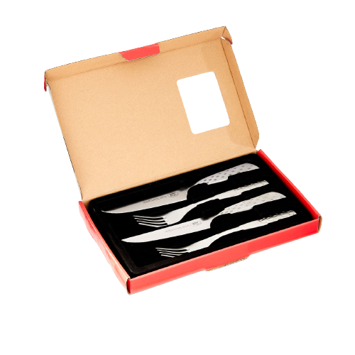 - В НАБОРЕ ВИЛКА И ЗАЗУБРЕННЫЙ НОЖ