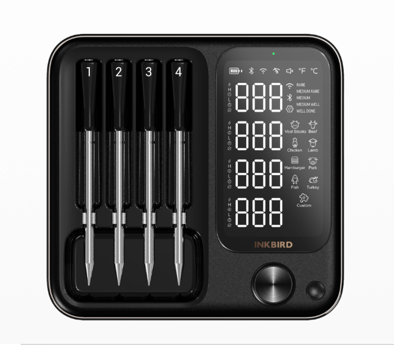 Набор INKBIRD INT-14BW состоит из четырёх беспроводных термометров для приготовления мяса и автономного блока управления, позволяет без проблем приготовить любимые блюда используя приложение в вашем смартфоне или в автономном режиме.